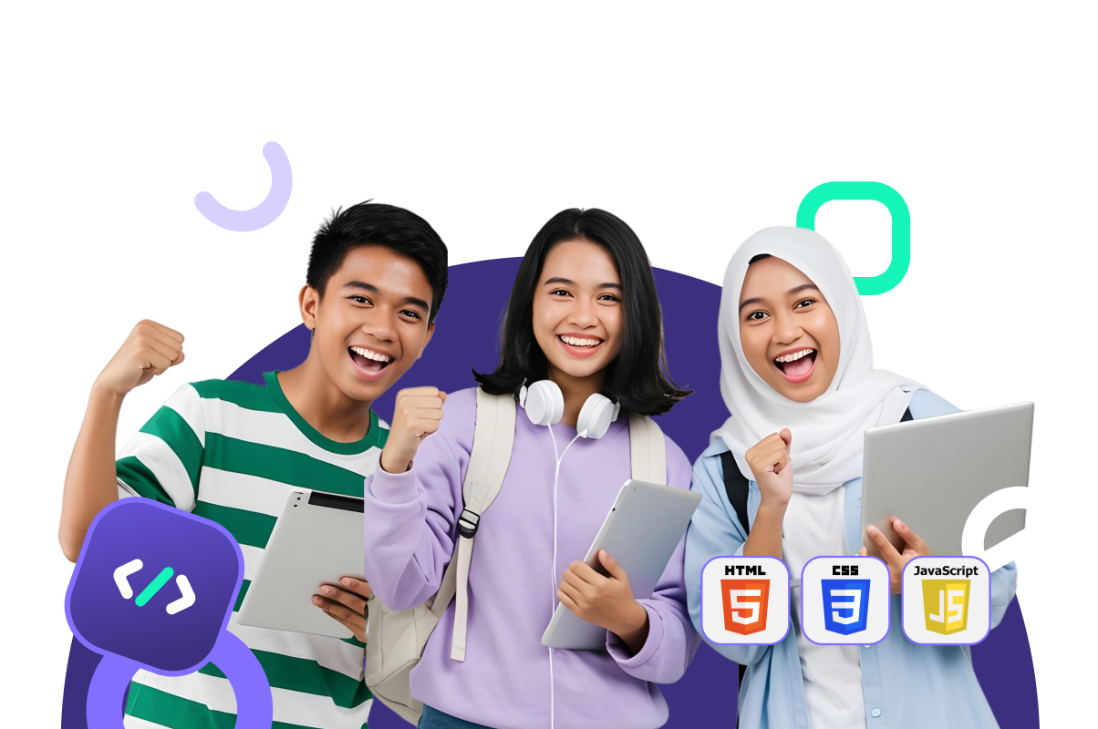 Code & Web mempunyai tujuan utama pembelajaran untuk membekali anak dengan dasar-dasar JavaScript yang berguna untuk membangun aplikasi web sederhana, sekaligus melatih kemampuan berpikir logis, analitis, dan kreatif.